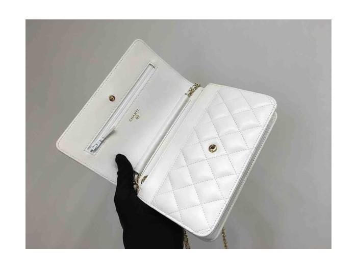 Chanel Classic Button Wallet on Chain (WOC) in Lambskin x Gold Hardware – 12.3 × 19.2 × 3.5 cm > Mini Bag Chain Mini