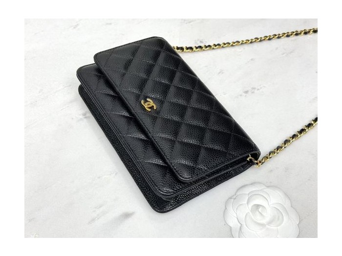 CHANEL WOC Wallet on Chain – Black Caviar with Gold Hardware