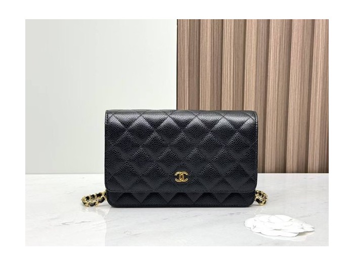 • CHANEL WOC Wallet on Chain – Black Caviar with Gold Hardware