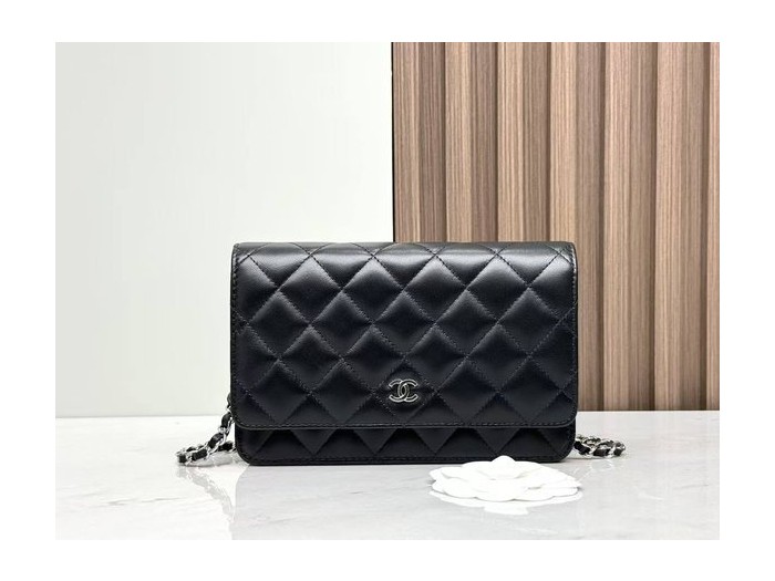 CHANEL WOC Wallet on Chain – Black with Silver Hardware