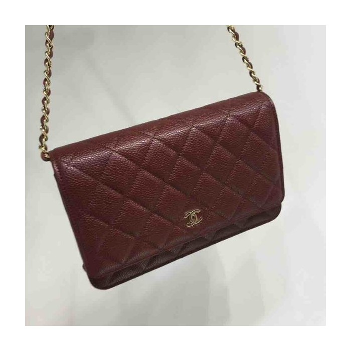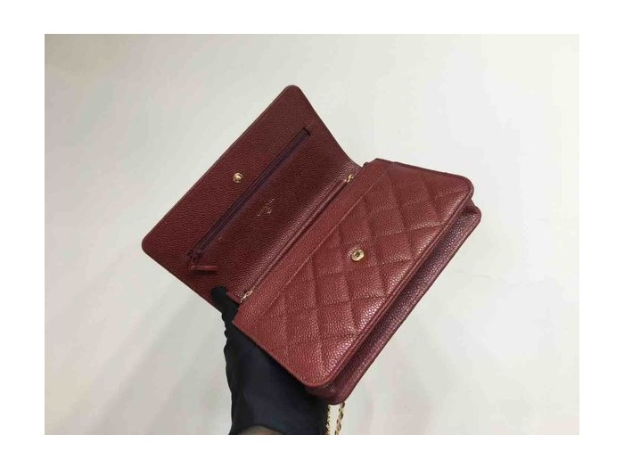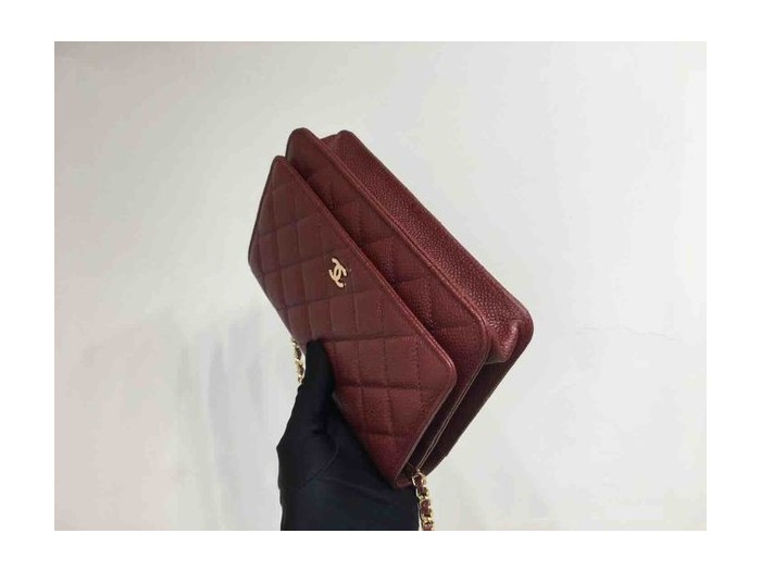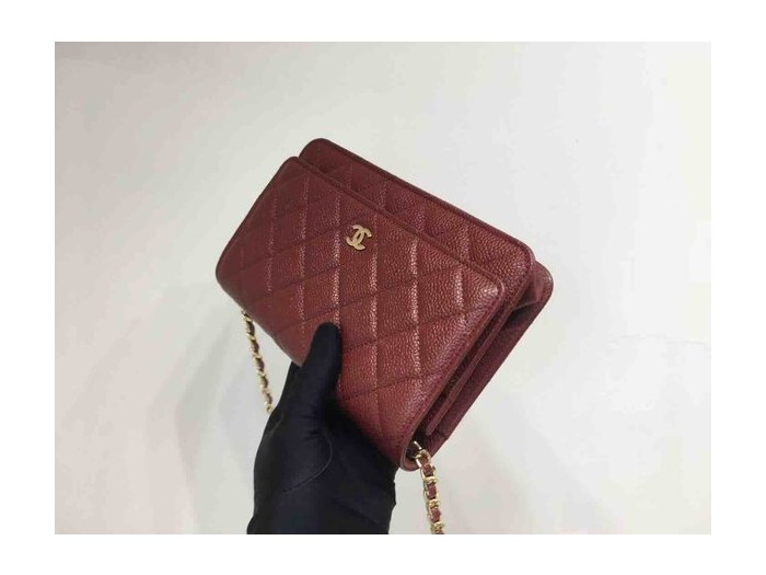 Chanel Classic Button Wallet on Chain (WOC) in Caviar Leather x Gold Hardware – 12.3 × 19.2 × 3.5 cm > Mini Bag Chain Mini