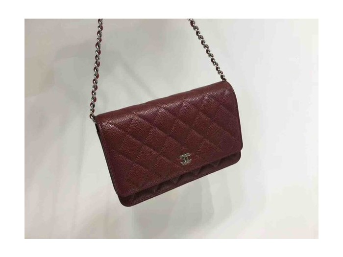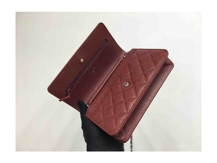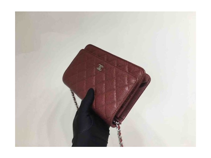 Chanel Classic Button Wallet on Chain (WOC) in Caviar Leather x Silver Hardware – 12.3 × 19.2 × 3.5 cm > Mini Bag Chain Mini