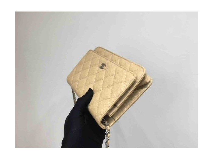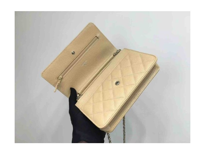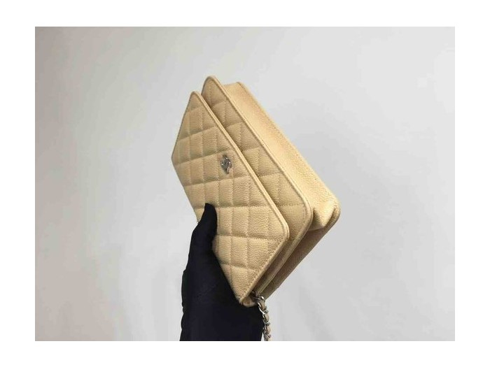 Chanel Classic Button Wallet on Chain (WOC) in Caviar Leather x Gold Hardware – 12.3 × 19.2 × 3.5 cm > Mini Bag Chain Mini