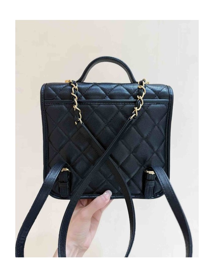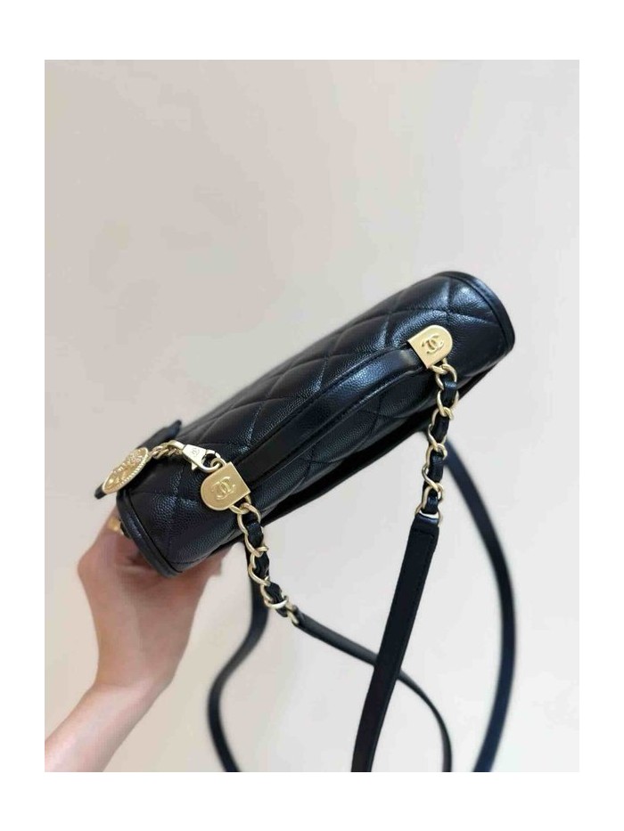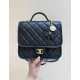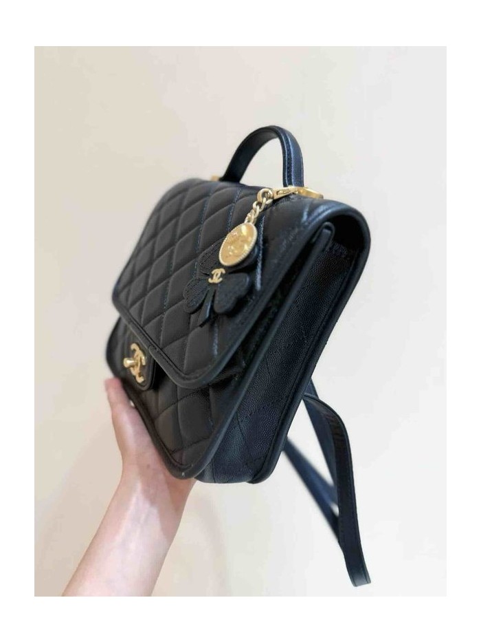 Chanel 25B Coin Clover Backpack Black Grained Calfskin GHW 22cm