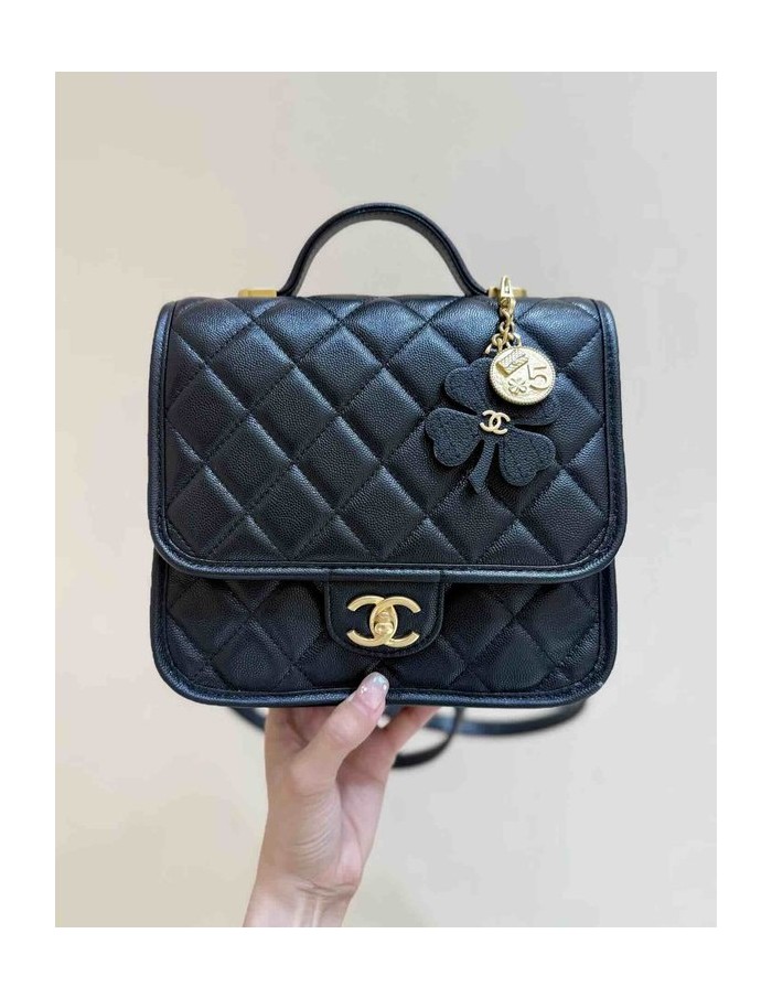 Chanel 25B Coin Clover Backpack Black Grained Calfskin GHW 22cm > Seasonal / Limited