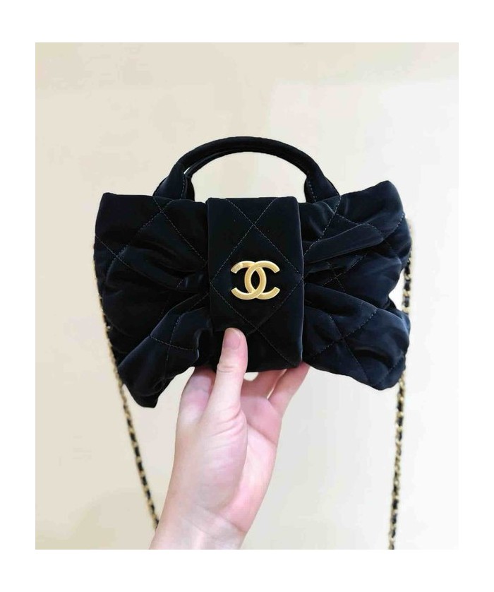 Chanel 25K Velvet Bow Bag Small Black 26cm > Seasonal / Limited