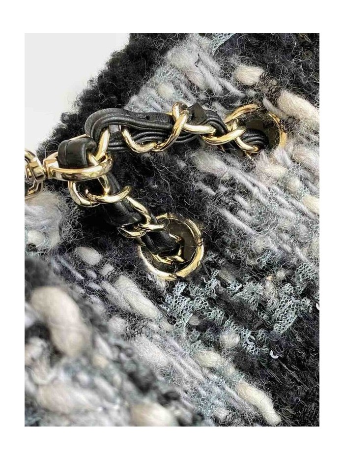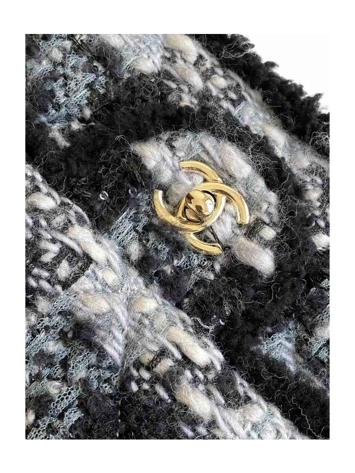 Chanel 25N Coco Neige Tweed Classic Flap Bag Black White Tweed GHW 26cm