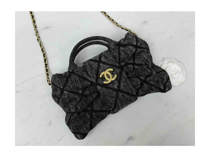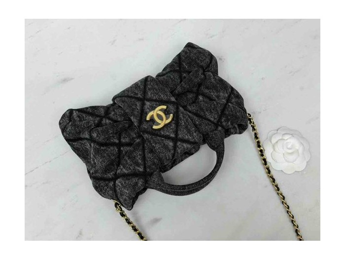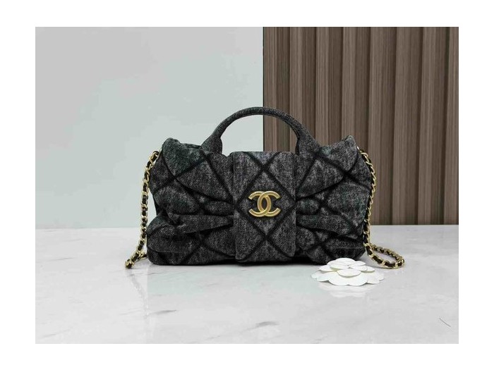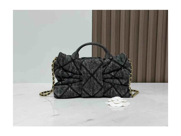 • Chanel 25K Bow Bag Washed Denim Small Black 26cm