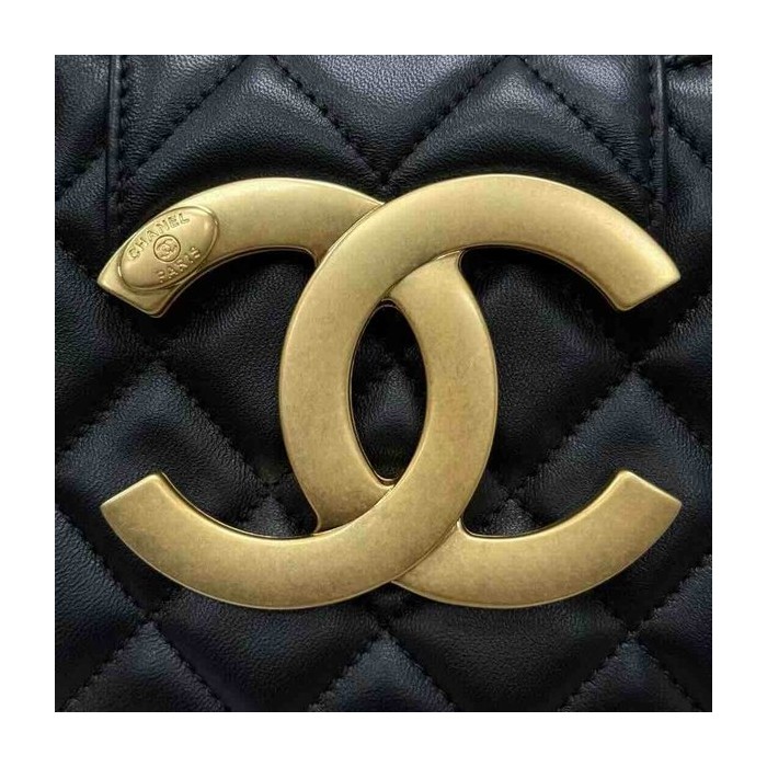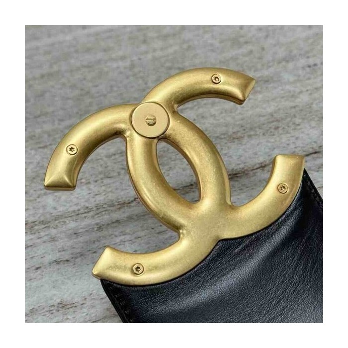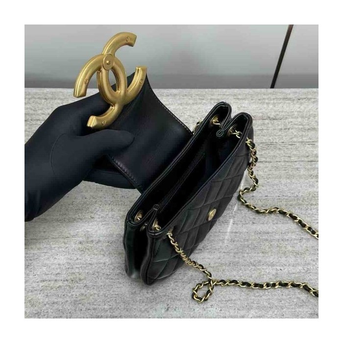 • Chanel 24C Round Crossbody Bag Black Calfskin GHW 21cm