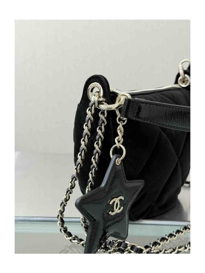 • Chanel 25N Coco Neige Crescent Star Bag Velvet Nylon GHW 22cm