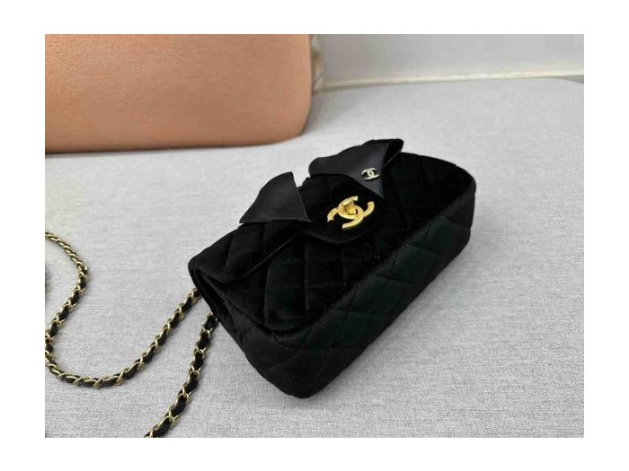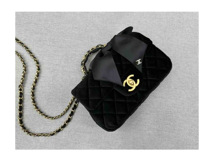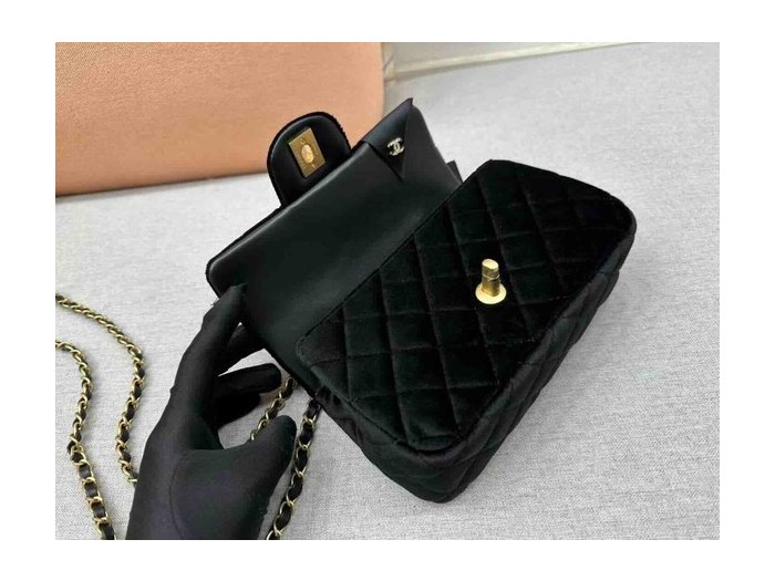 Chanel Top Handle Flap Bag Velvet Chain GHW 20cm > Seasonal / Limited