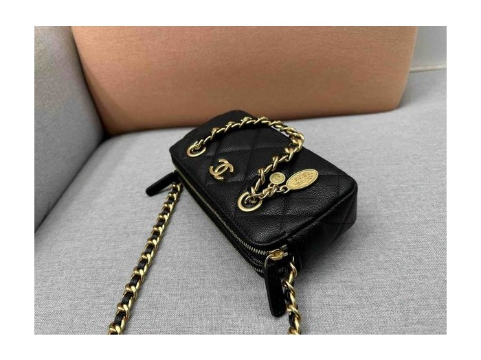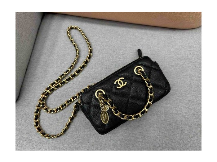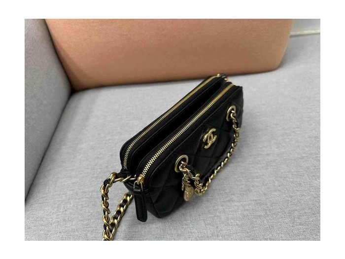 • Chanel Double Zip Coin Bag Calfskin GHW 18cm