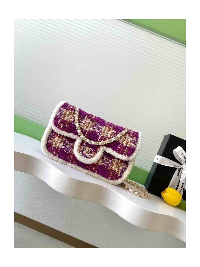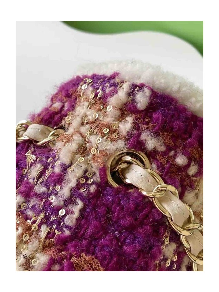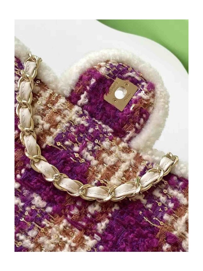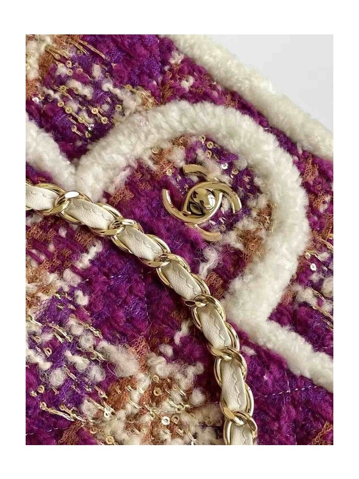 Chanel 25N Coco Neige Tweed Classic Flap Bag Purple Red Tweed GHW 33cm