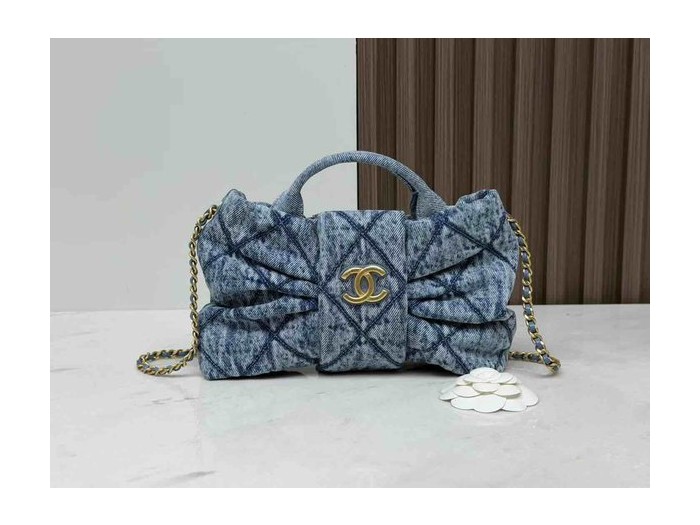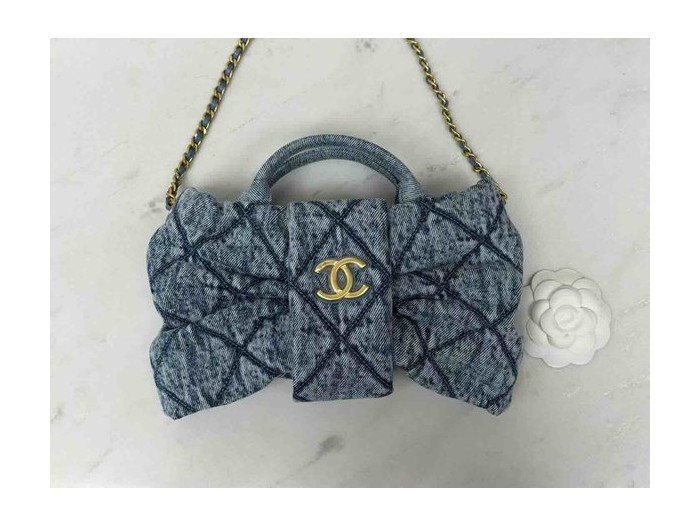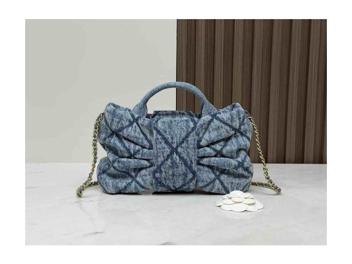 • Chanel 25K Bow Bag Washed Denim Small Blue 26cm