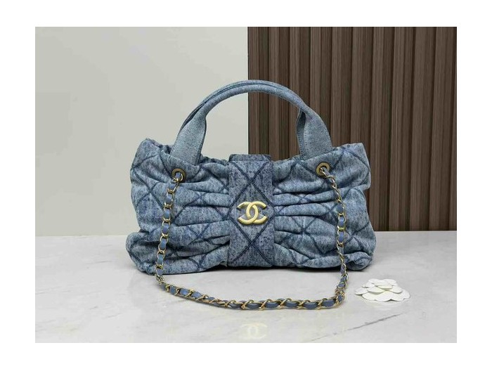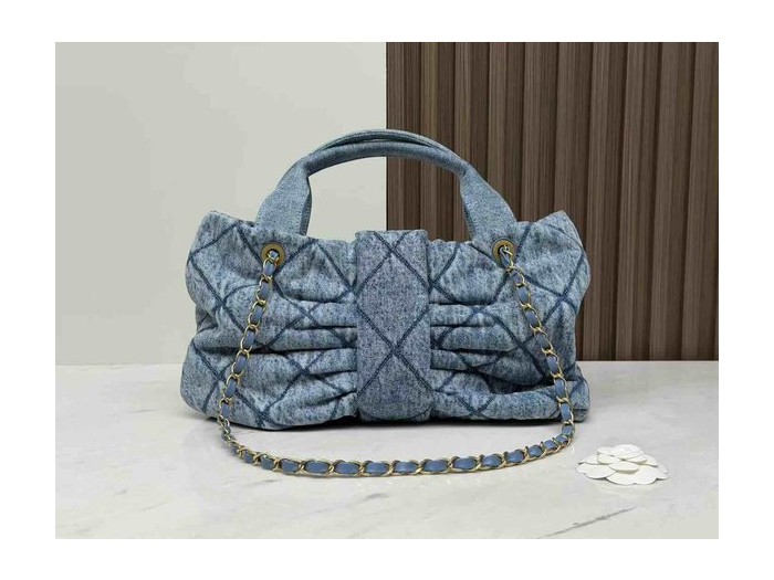 • Chanel 25K Bow Bag Washed Denim Medium Blue 38cm
