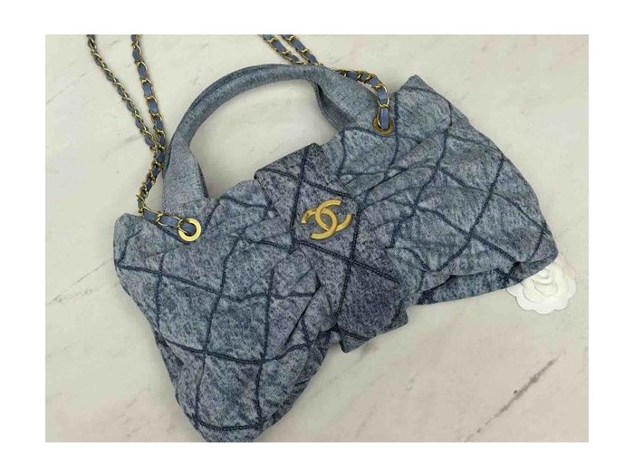 Chanel 25K Bow Bag Washed Denim Medium Blue 38cm > Seasonal / Limited