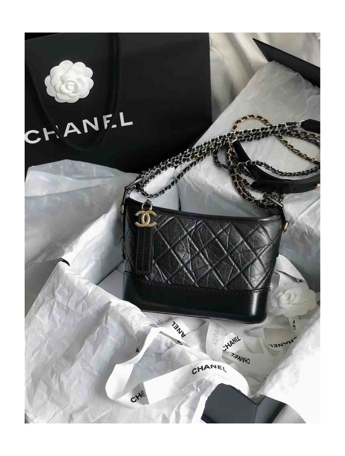 Chanel Gabrielle Hobo Bag Black Small Calfskin 20cm