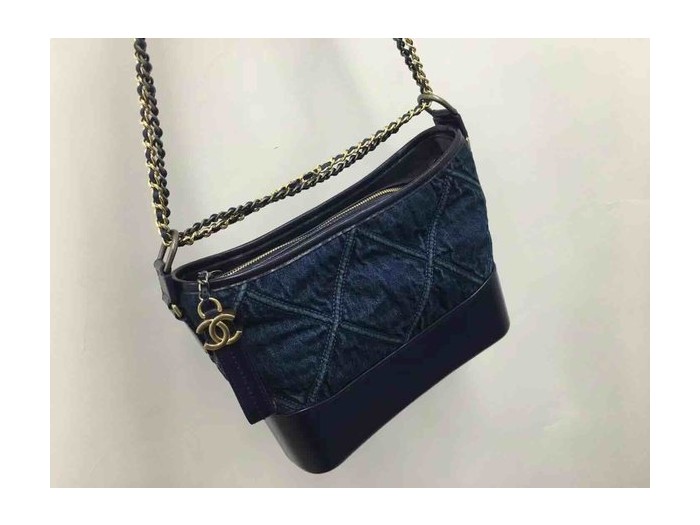 Chanel Gabrielle Denim Hobo Bag Calfskin Trim Two Tone Hardware 25cm > Gabrielle