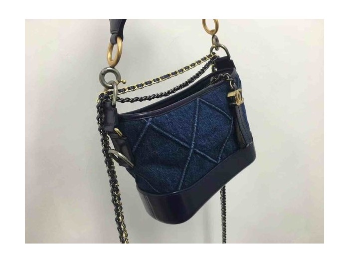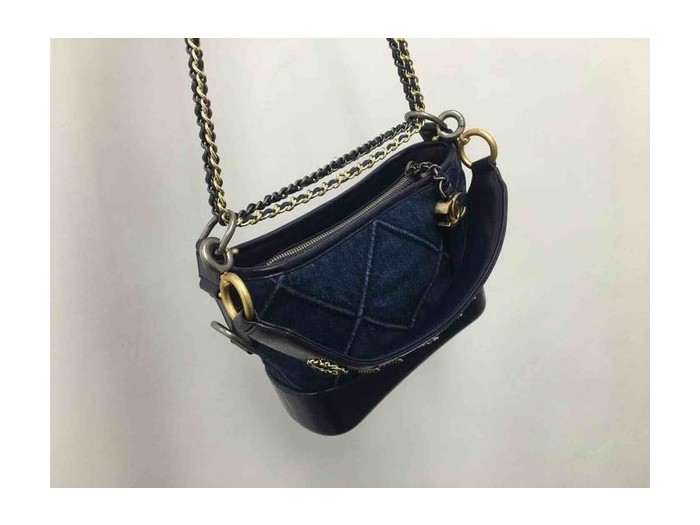 Chanel Gabrielle Denim Hobo Bag Calfskin Trim Two Tone Hardware 20cm > Gabrielle
