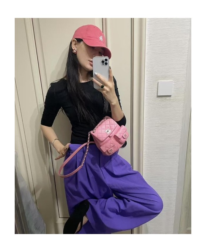CHANEL 23A Mini Duma Backpack – Glossy Black Calfskin (18cm)