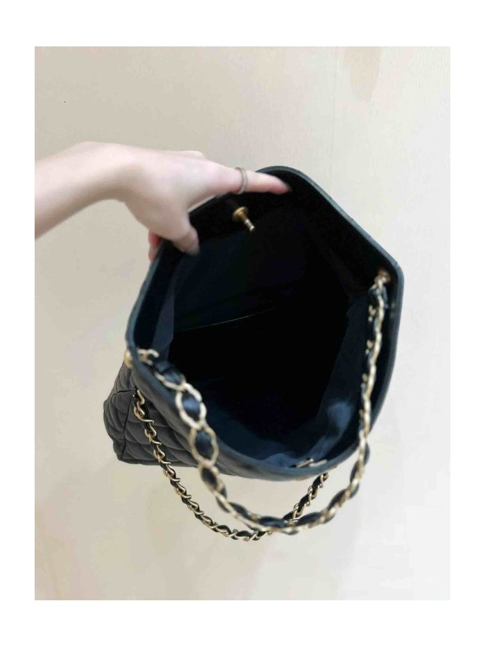 • Chanel 24P Maxi Hobo Black Lambskin 37cm