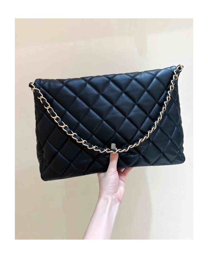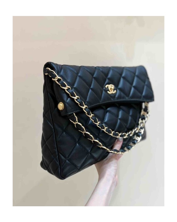 Chanel 24P Maxi Hobo Black Lambskin 37cm > Big Bag