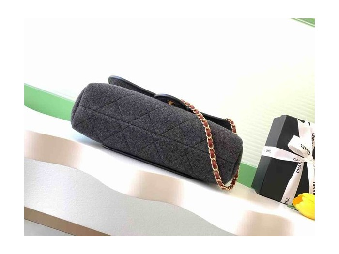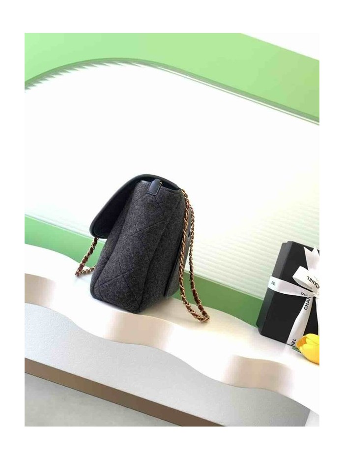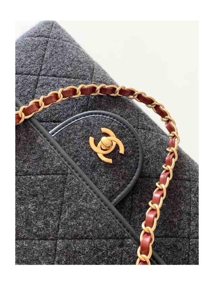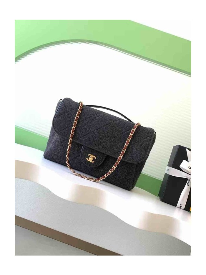 Chanel 25K Felt Tweed Large Tote Black Tweed & Calfskin GHW 32cm > Big Bag