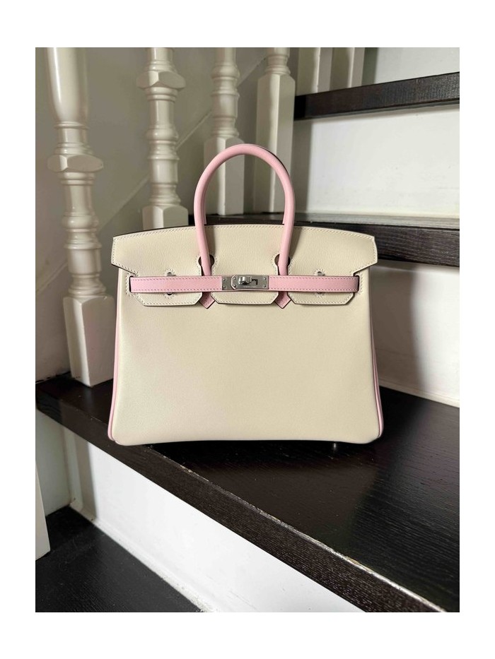 Hermès Birkin25 Swift Rose Sakura x Craie x Palladium Hardware