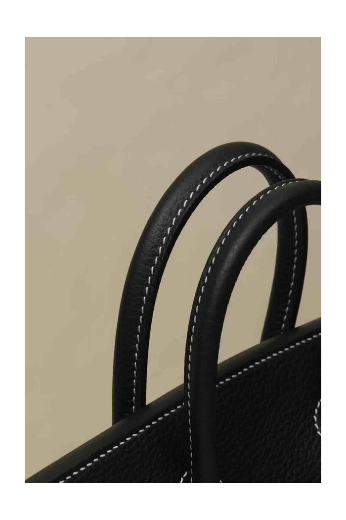 • Hermès Birkin 25 Togo Noir White Stich x Palladium Hardware