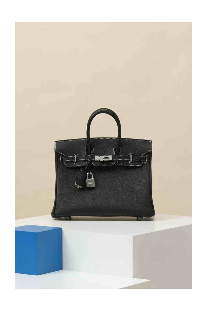 Hermès Birkin 25 Togo Noir White Stich x Palladium Hardware > Birkin25