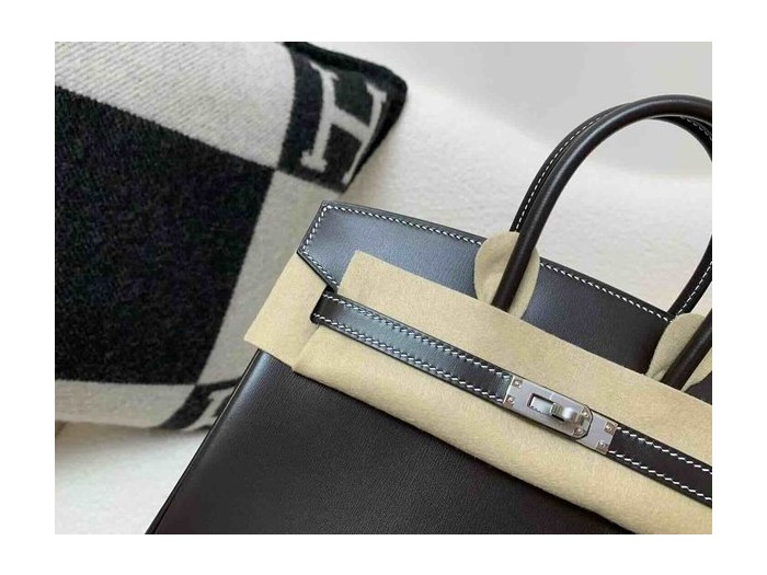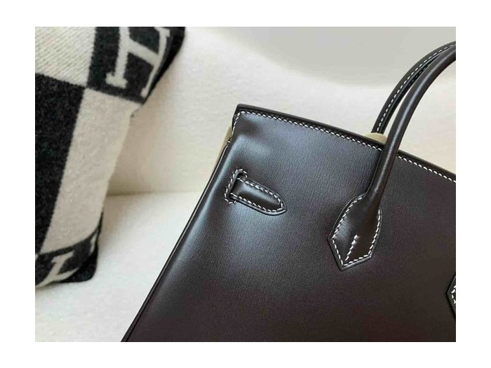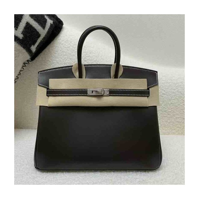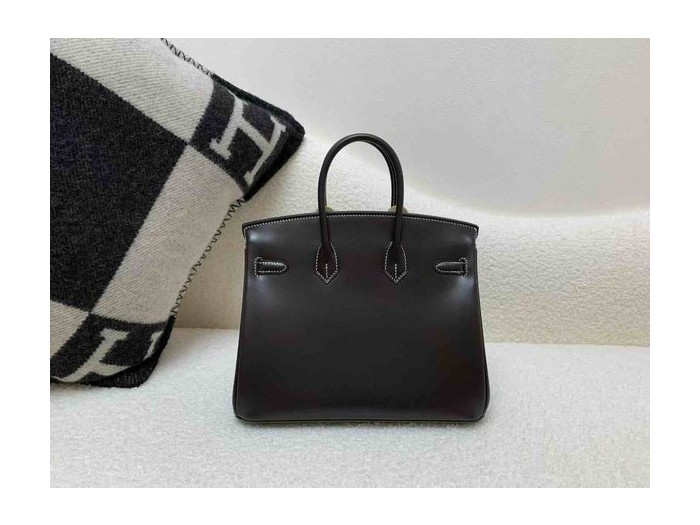 Hermès Birkin 25 Box Noir with White Stitch x Palladium Hardware > Birkin25