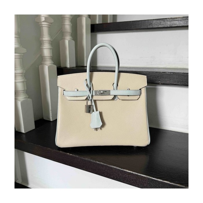 Hermès Birkin25 Chevre Mysore Nata x Blue Brume x Palladium Hardware(HCP) > Birkin25