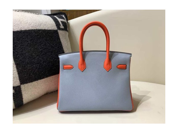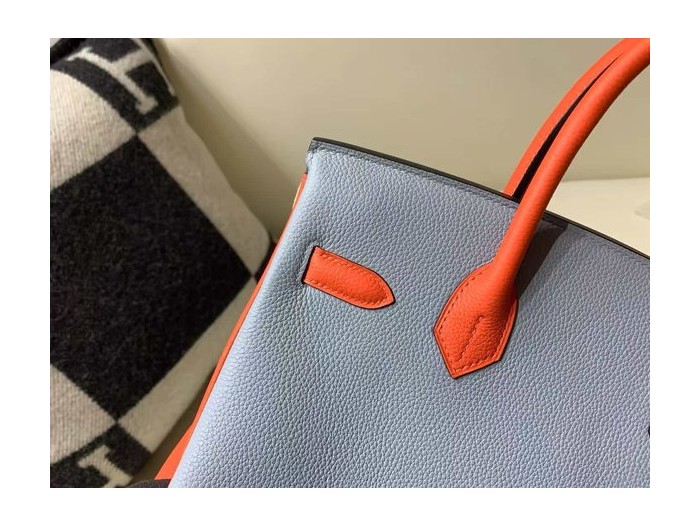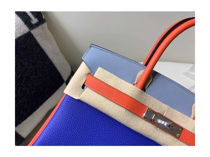 • Hermès Birkin 25 Togo Blue Electric / Orange / Bleu Glacier in x Palladium Hardware
