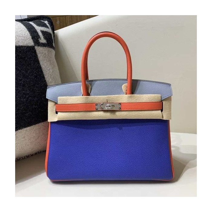 Hermès Birkin 25 Togo Blue Electric / Orange / Bleu Glacier in x Palladium Hardware