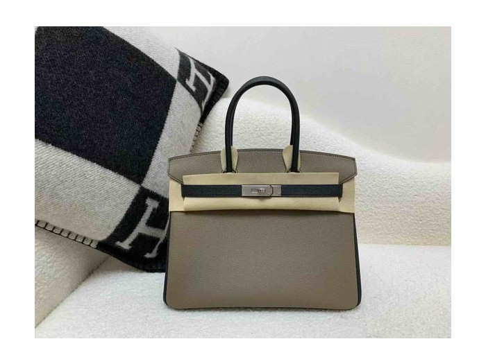• Hermès Birkin 30 Togo Etoupe & Noir x Palladium Hardware