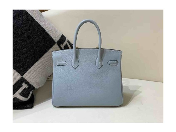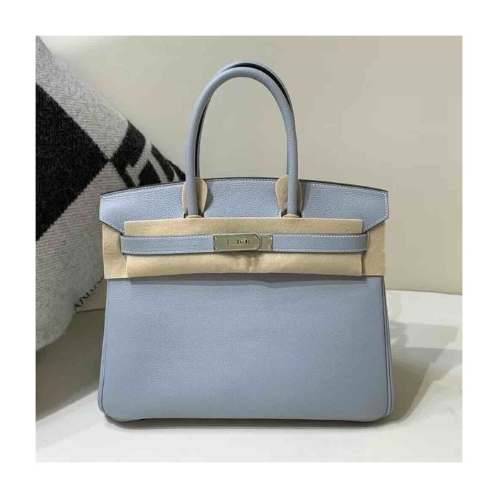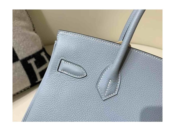 • Hermès Birkin 30 Togo Bleu Lin x Palladium Hardware
