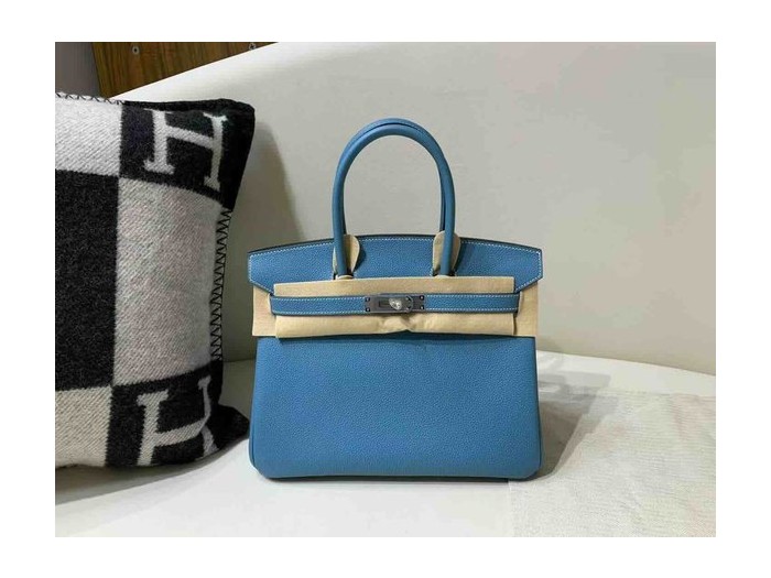 • Hermès Birkin30 Togo New Blue Jean x Palladium Hardware