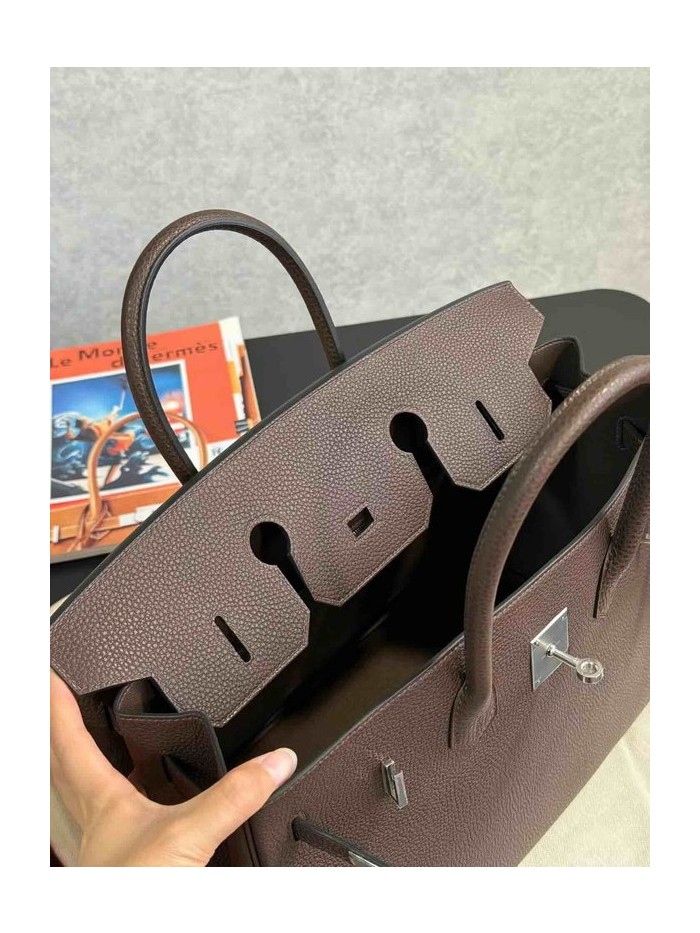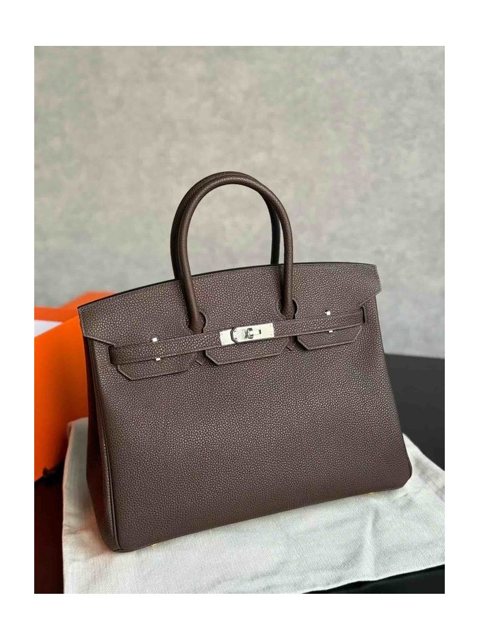 • Hermès Birkin 35 Togo Chocolat x Palladium Hardware