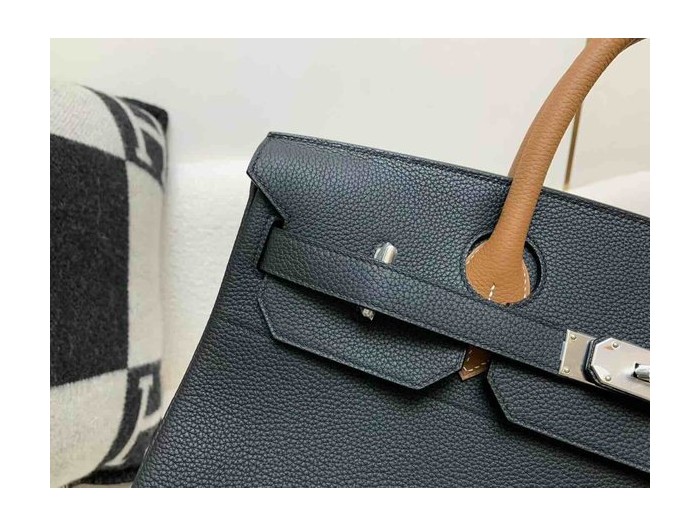 • Hermès Birkin 40 HAC Togo Noir & Gold & Royal Blue x Palladium Hardware