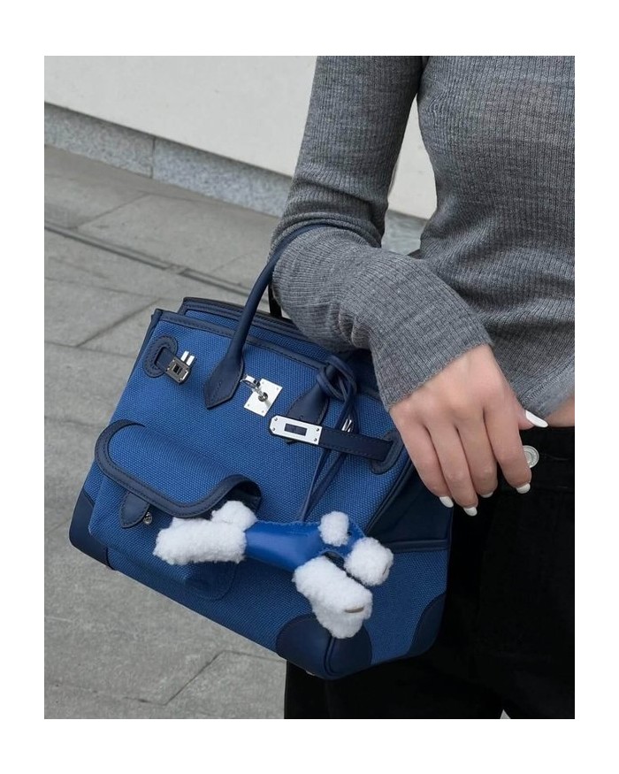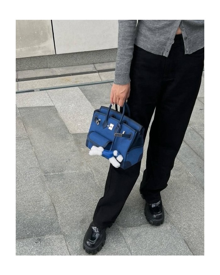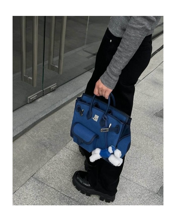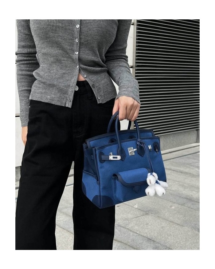 • Hermès Cargo Birkin25 Blue Egee Toile Goeland / Navy Swift&Palladium Hardware
