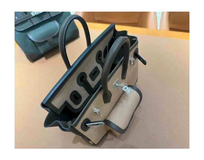 • Hermès Birkin 25 Cargo Canvas & Swift Gris Mousse x Palladium Hardware