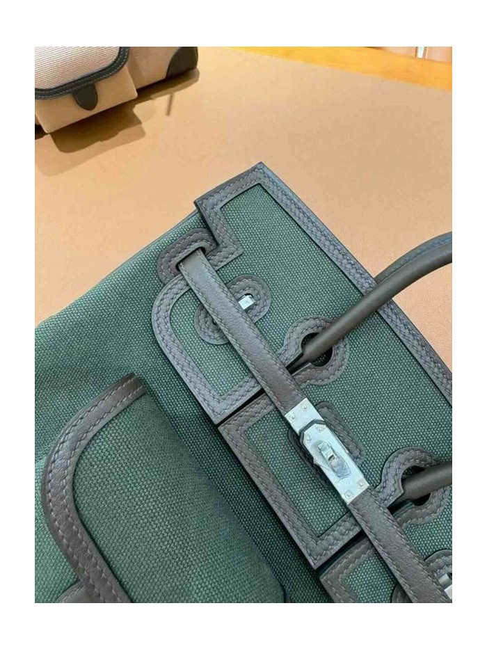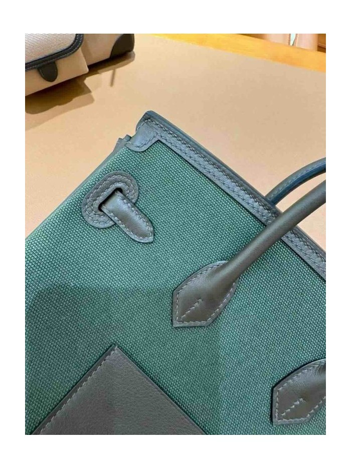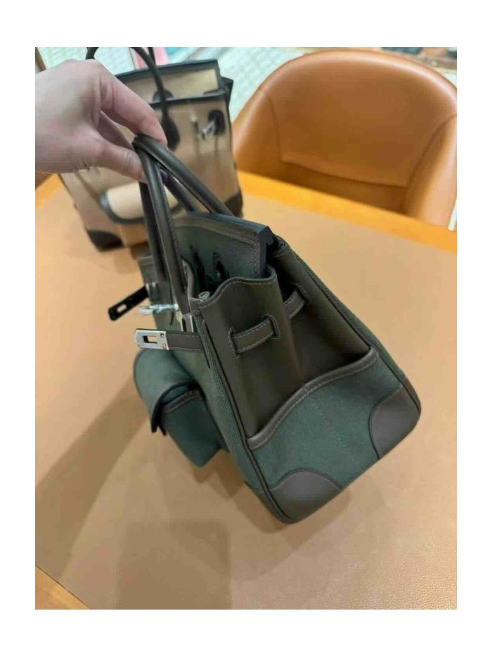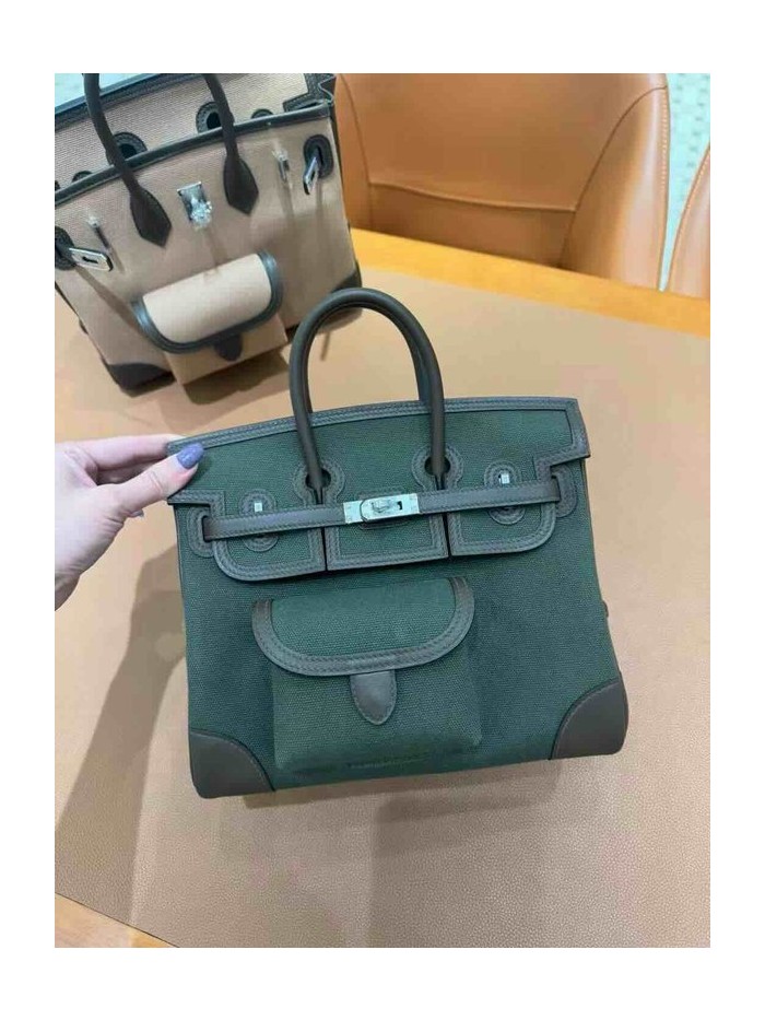 • Hermès Birkin 25 Cargo Canvas & Swift Bronze Green x Palladium Hardware