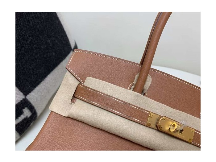 • Hermès Soulder Birkin 29 Retourne Gold Evercolor x Gold Hardware
