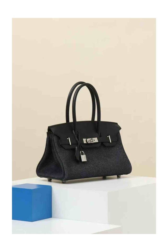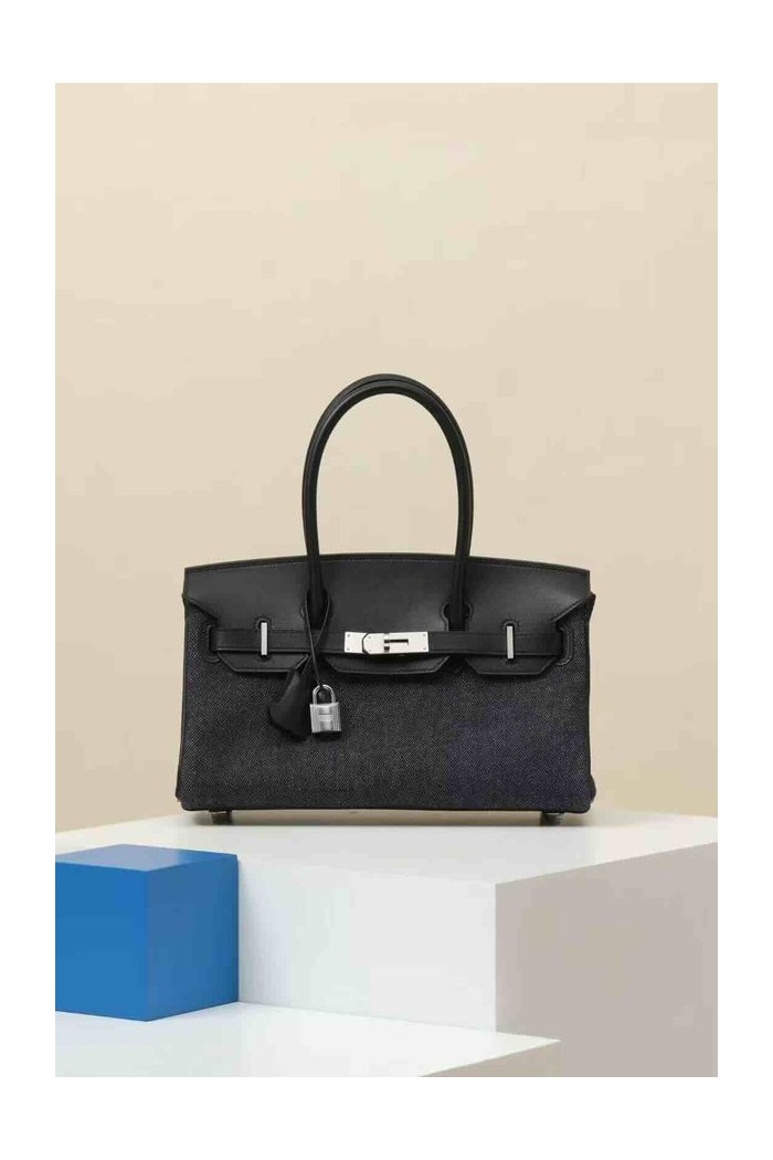 Hermès Birkin Denim Black Toile / Black Swift x Palladium Hardware > Shoulder Birkin