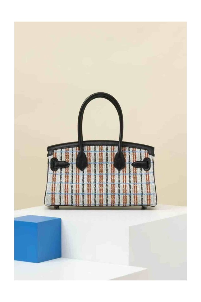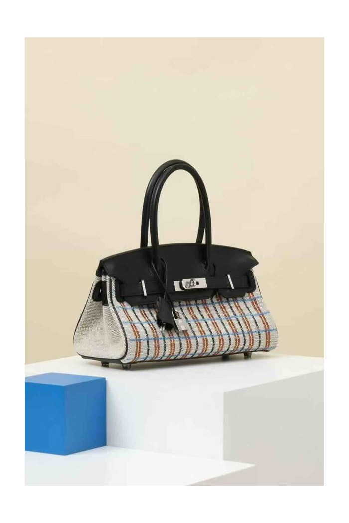 HERMÈS Birkin Shoulder Light 29 Noir (89) Ecru Swift Toile H canvas x Palladium hardware > Shoulder Birkin