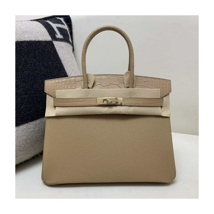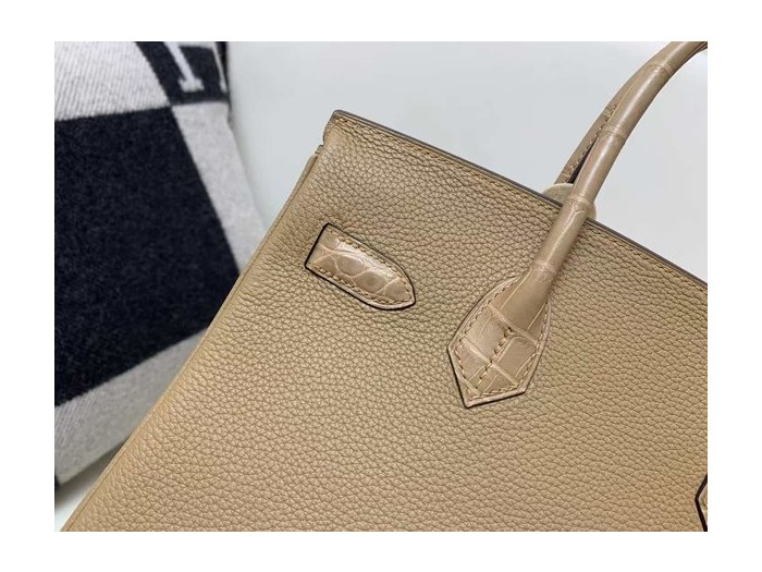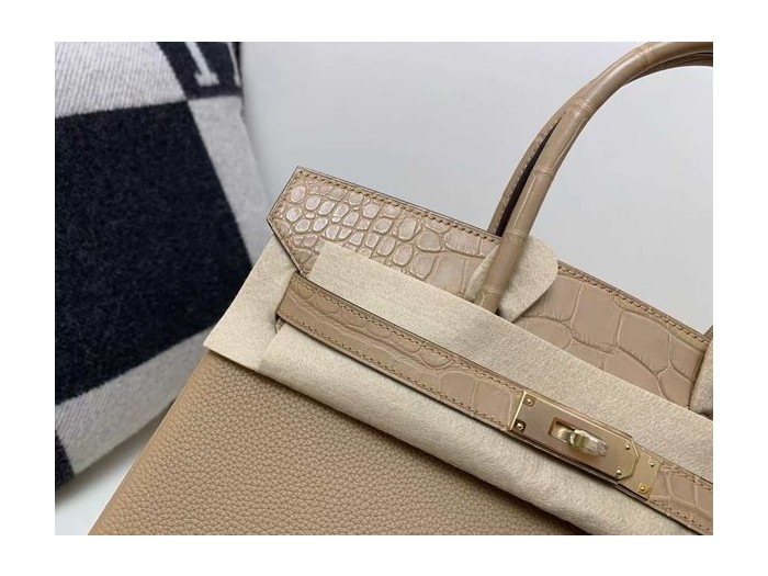 • Hermès Birkin 25 Chai Togo with Matte Alligator x Gold Hardware