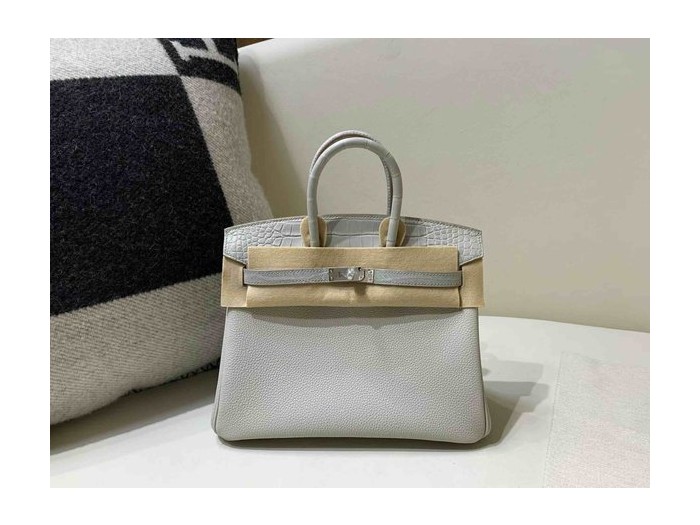 Hermès Birkin 25 Touch Gris Perle Togo & Alligator x Palladium Hardware > Touch