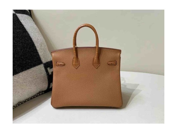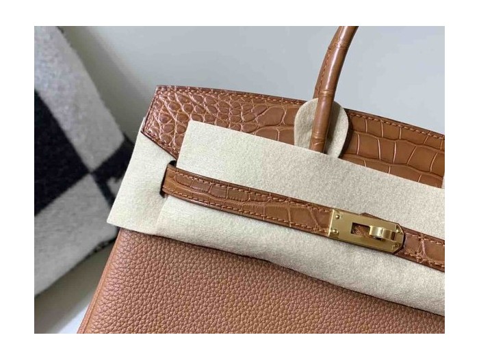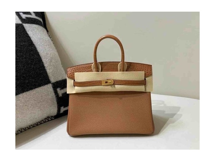 • Hermès Birkin 25 Touch Gold Togo & Alligator x Gold Hardware