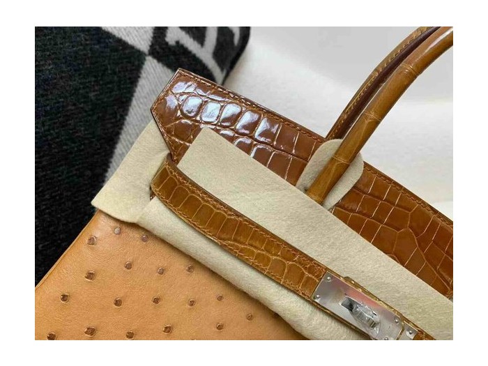 • Hermès Birkin 25 Trench Ostrich x Gold Hardware