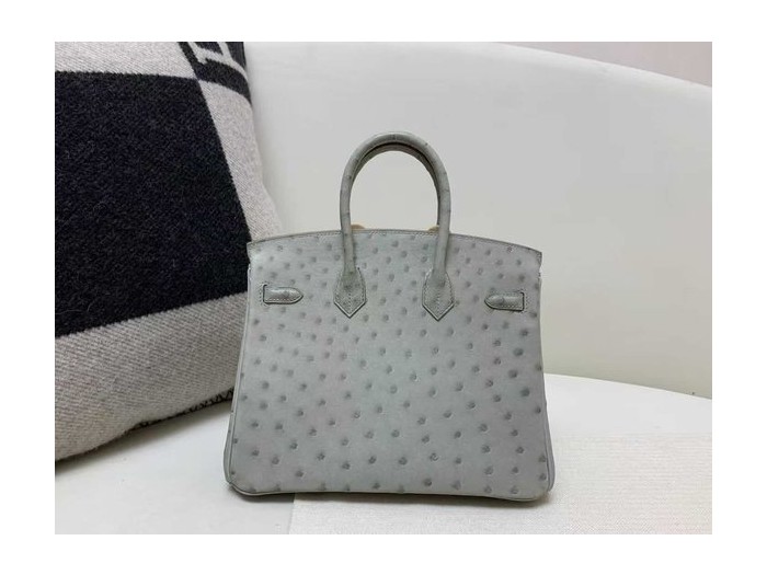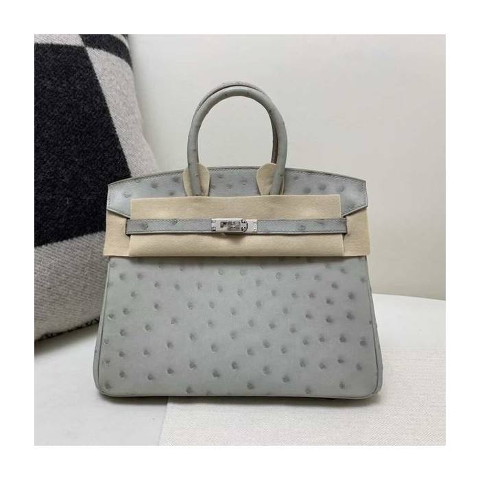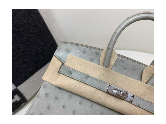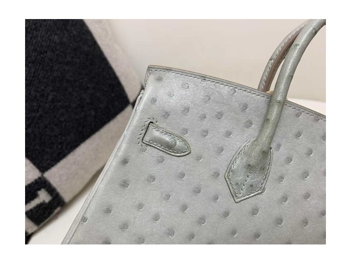 • Hermès Birkin 25 Ostrich Gris Perle x Palladium Hardware